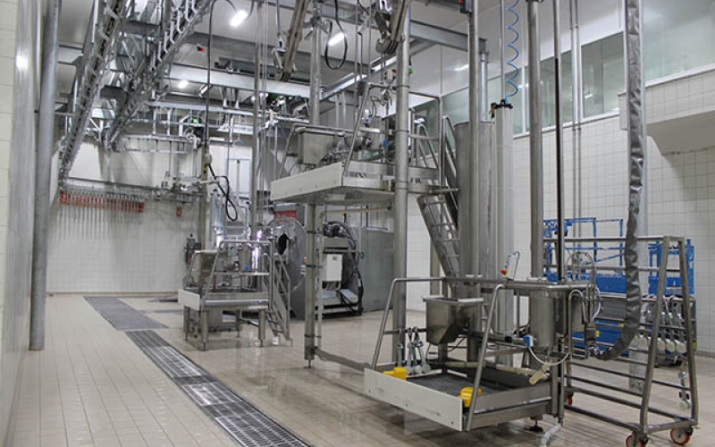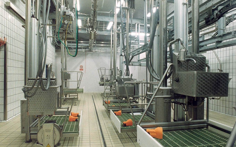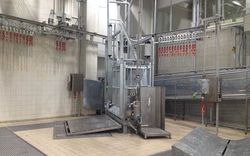 Gli impianti comprendono trappole rituali o tradizionali, efficienti trsferimenti automatici, pedane elevatrici mobili, linee autodivaricanti o gravitazionali, linee di ispezione visceri ed organi, macchine strappapelli, seghe dimezzatrici, guidovie automatizzate per preraffreddamento e stoccaggio in cella.